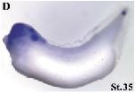 tbx6r (T-box 6 related) gene expression in Xenopus laevis embryos, NF stage 35, as assayed by in situ hybridization, lateral view, anteriorleft, dorsal up.