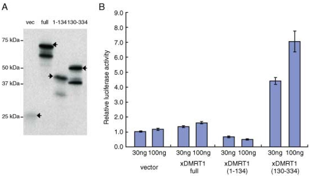 Expression and promoter analysis of Xenopus DMRT1 and functional characterization of the transactivation property of its protein.