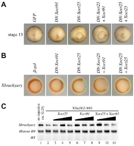 Fig. 2. Xoct25 and Xoct91 could rescue the decrease of Xbrachyury