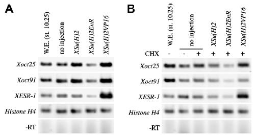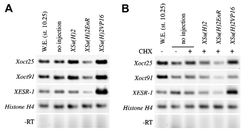 Fig. 3. XSu(H)2EnR inhibited the gene expressions of Xoct25 and Xoct91 under CHX treatment. Synthesized mRNAs of 2 ng XSu(H)2, XSu(H)2EnR