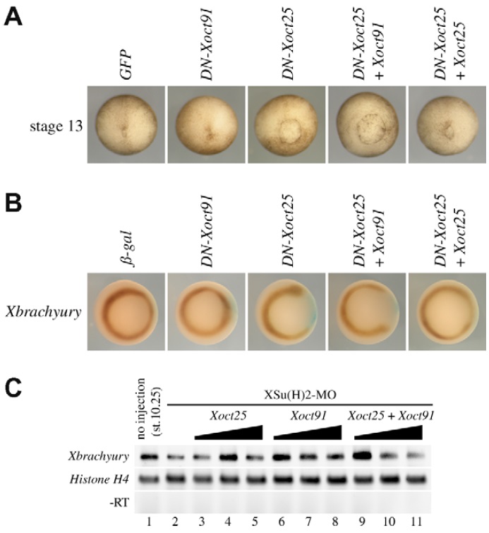 changes were analyzed at stage 13. (B) Effect of DN-Xoct25 and DNXoct91
