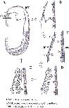 Fig. 10. Schematic diagram of retinal regeneration in X. laevis. The upper part in (A) shows retinectomized eye cavity, and the lower shows intact one. Cells from two origins regenerate the retina; ciliary marginal cells and the retinal pigmented epithelial cells. The CMZ (ciliary marginal zone) partially remains after retinectomy with the present surgical procedure, and CMZ stem cells initiate migration on the RVM (retinal vascular membrane) to the posterior direction. (B) At the same time, some of RPE cells leave RPE layer, migrate and attach to the RVM, where they form a new RPE layer as indicated in (C). Numerous capillaries (indicated as C) are seen in RVM. RPE cells on the RVM proliferate and transdifferentiate to neural retinal precursor cells (D, E). RPE cells that were positively stained for RPE65 are shown by brown-colored nuclei or pigmented granules in the cytoplasm.