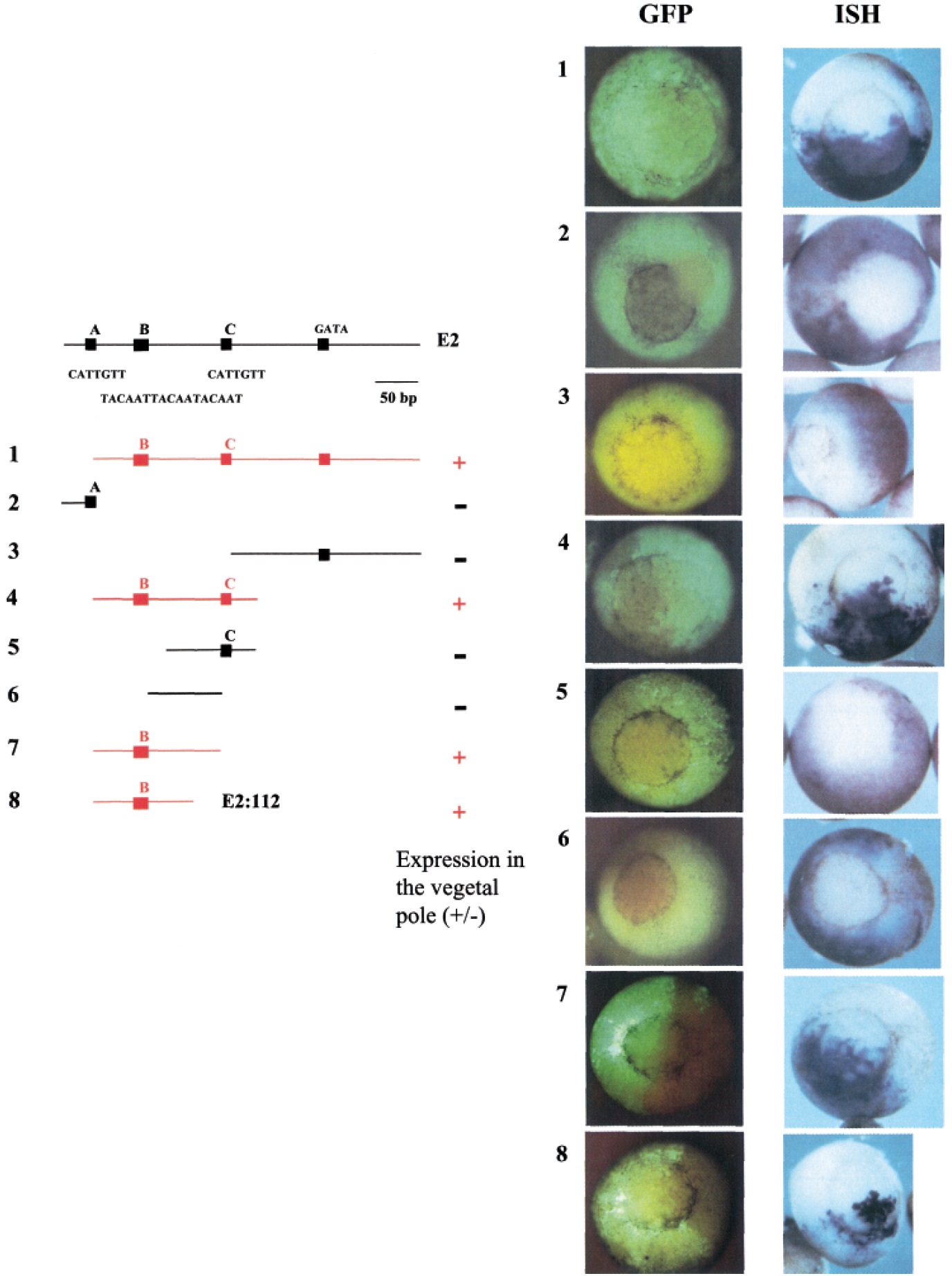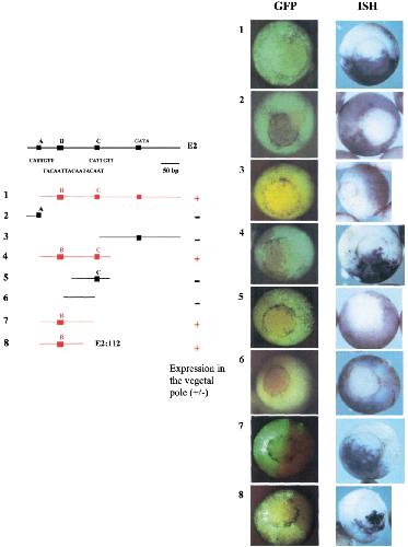 Deletion of site A from E2 does not affect endoderm expression (1),