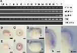 Expression pattern of xCXCR4, and xSDF-1α and xSDF-1. (A) RT-PCR analysis of xCXCR4, and xSDF-1α and xSDF-1. xCXCR4 transcripts increased at the late blastula stage (St. 9). xSDF-1α was detected at the early gastrula stage (St.10), however xSDF-1 transcript levels increased at the tailbud stage (St.26). ODC was included as a loading control. (BâI) Spatial expression pattern of xCXCR4 (BâD,H) and xSDF-1α (EâG,I). Each panel demonstrates the lateral view of stage 10 (B,E), vegetal view of stage 11.5 (C,F), sagittal section of stage 10 (D,GâI), embryos. The panels of (H and I) indicate power magnified views of the dorsal side of (D and G), respectively. Arrowheads indicate the dorsal blastopore. White-dotted lines in (H and I) indicate the border of IMZ and BCR. Scale bar in (BâG), 0.5 mm, and 0.1 mm in (H and I).