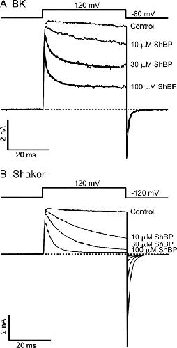 Foster, A peptide derived from the Shaker B K+ channel produces short and long blocks of reconstituted Ca(2+)-dependent K+ channels. 1992, Pubmed