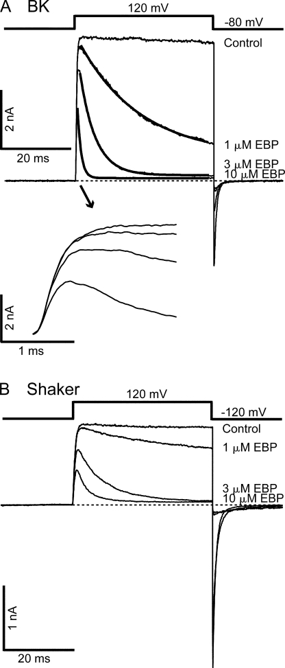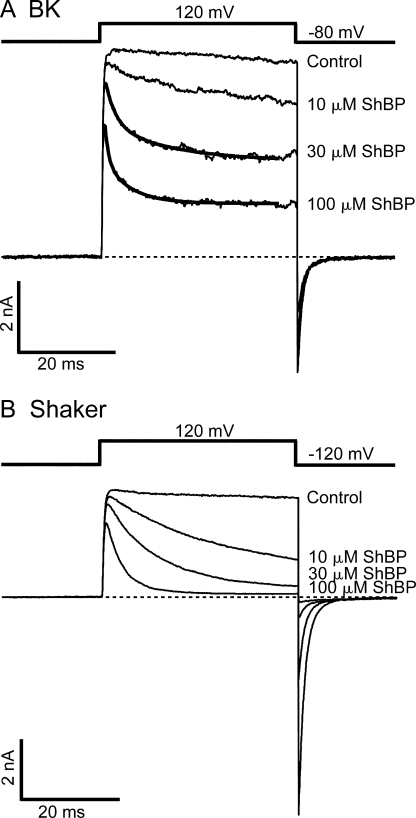 State-dependent block of BK channels by synthesized shaker ball peptides.