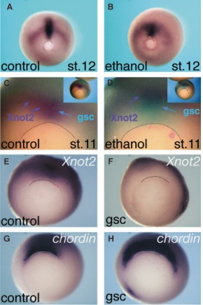 EtOH. (C, D) By late gastrula stages (st. 12.5) the gsc signal continues