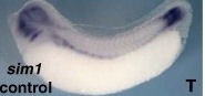 sim1 (SIM bHLH transcription factor 1) gene expression in Xenopus laevis embryo, at NF stage 32, assayed via in situ hybridization, lateral view, anterior left, dorsal up.