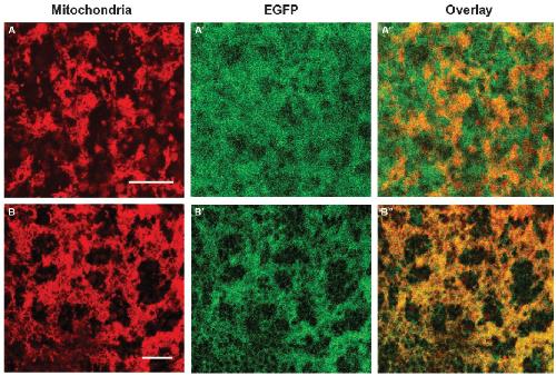ethyl ester (TMRE) (A and B). Merged images (A00 and B00) revealed