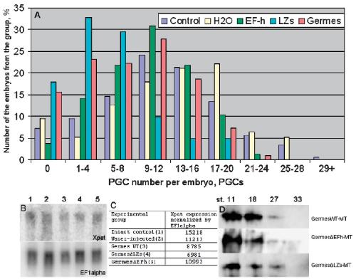 GermesDLZs (D00) or WT Germes (E00) mRNAs, Xpat is also present