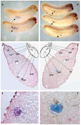 mesoderm; n, nucleus; not, notochord; nt, neural tube; pgc, primordial