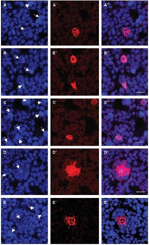 were immunostained for Xpat protein (A0âE0). Nuclei