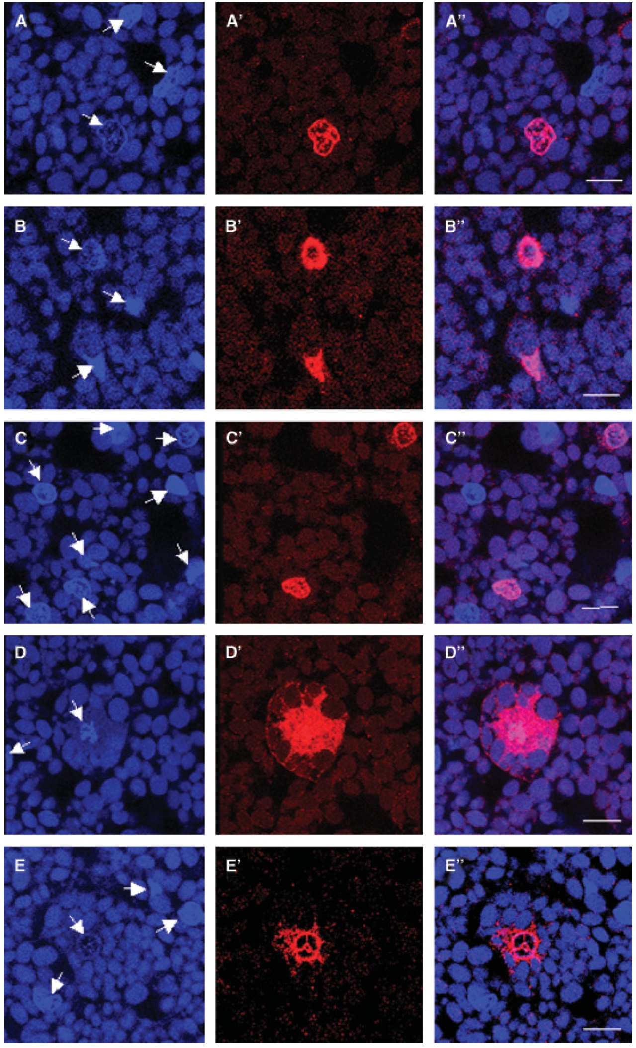 yolk platelets (AâE). Merged images (A00âE00) demonstrate exclusively