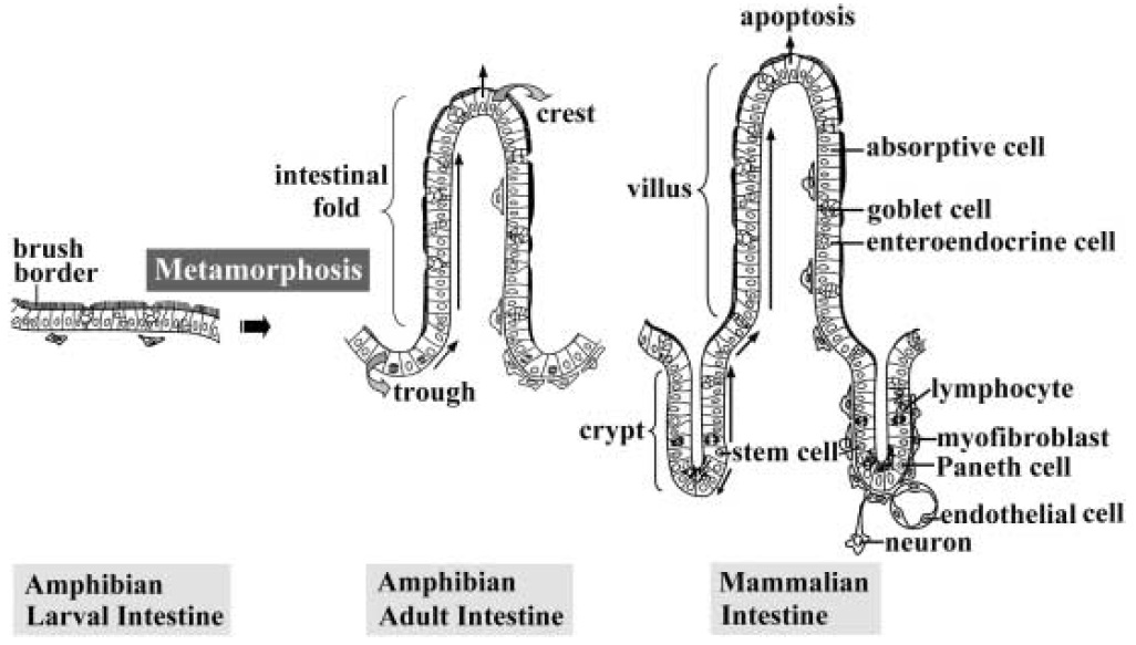intestine. During amphibian metamorphosis,