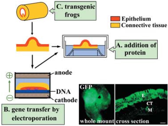 Intestines isolated from transgenic frogs (C) are also useful for