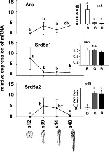 Relative mRNA expression of steroid-5-alpha-reductase type 1 (Srd5a1) mRNA in gonads with kidney (G, upper panel) and in brain (B, lower panel) of tadpoles of X. laevis during ontogeny corresponding to Fig. 4. Values are expressed as means ± SD derived from six individuals at each developmental stage. Significant differences between the developmental stages were indicated by different letters (p < 0.05).