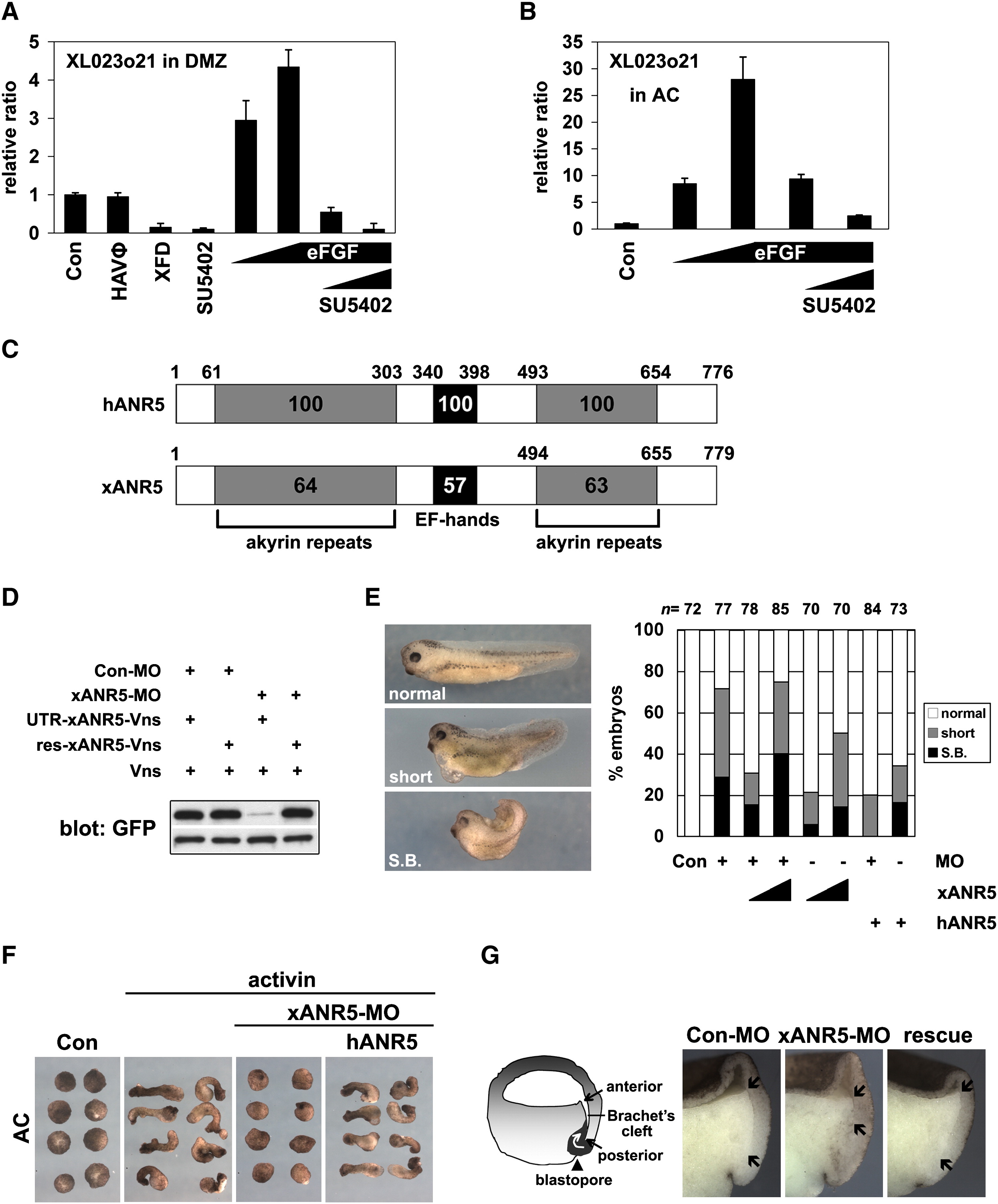 Figure 1. xANR5, an FGF-Responsive Gene Product, Is Important for Xenopus Gastrulation