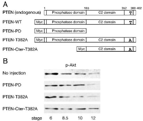 The embryos were injected with mRNA of either PTEN-PD, PTEN-WT, PTENT382A,