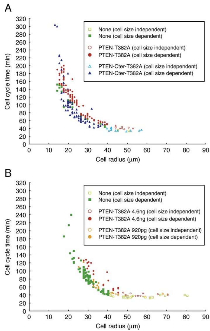 of PTEN activity (PTEN-T382A) enhanced elongation of the cell cycle times
