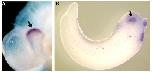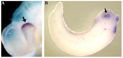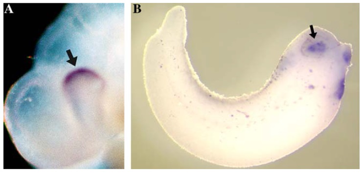 Fig. 1. Tbx12 expression in the retina (arrows) of E9.5 mouse embryos