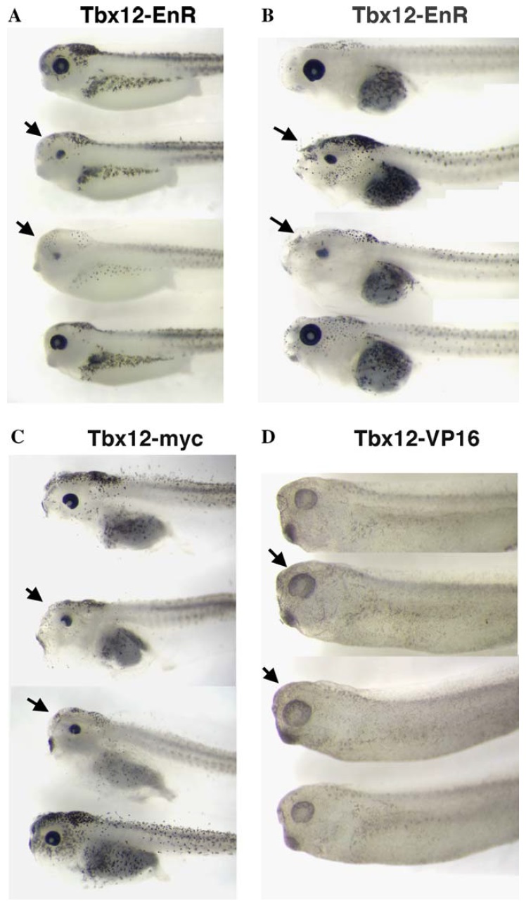 Stage 38 Tbx12-EnR embryos (A), stage 46 Tbx12-EnR embryos