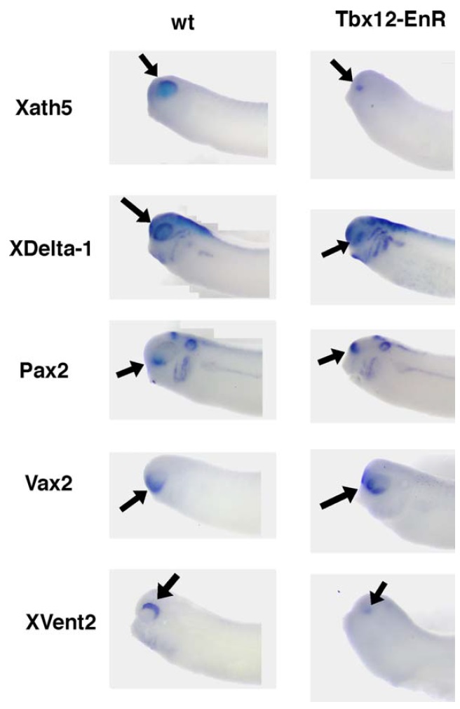 (arrows) of stage 28 wild type and Tbx12-EnR injected embryos.