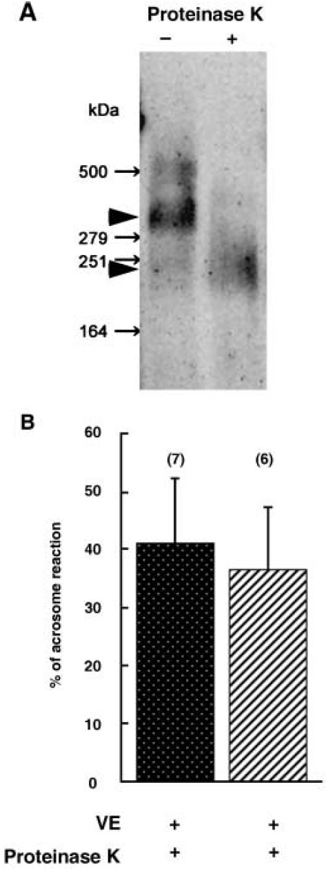 Fig. 3. Proteinase K digestion of ARISX. (A) VE was digested