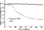 Figure 6. Protection of all-trans retinol by full-length Xenopus IRBP. Three μl of an ethanolic solution of all-trans retinol was added to 400 μl of 2.7 μM full-length Xenopus IRBP in PBS. The final concentration of all-trans retinol in solution was 3.2 μM. The degradation of all-trans retinol was monitored by measuring its absorbance at 325 nm as a function of time. For each sample, absorbance measurements were made every 2 min for 72 minutes. Full-length Xenopus IRBP (filled circles) is able to protect all-trans retinol from degradation as compared to a PBS control (unfilled circles).