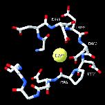 Figure 10. . Hypothetical model of the Ca2+ bowl. Residues 896–907 of mSlo's Ca2+ bowl were positioned according to the backbone carbon trace of parvalbumin's first Ca2+-binding loop and energy minimized.
