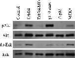 Role of TGF alpha stimulation of the ERK, PI3 kinase and PLC gamma pathways in ovarian cancer growth and migration.