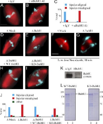 Johnson, Bub1 is required for kinetochore localization of BubR1, Cenp-E, Cenp-F and Mad2, and chromosome congression. 2004, Pubmed , Xenbase