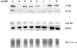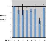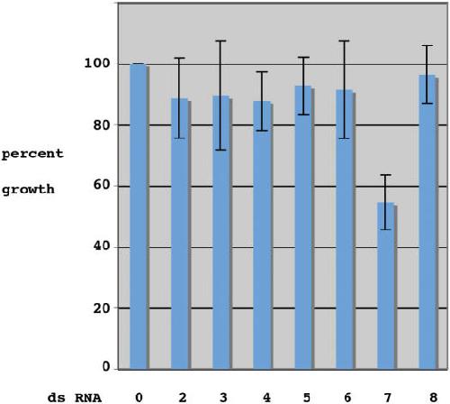 Figure 4. Day 5 growth profiles of MCM targeted cells compared to a control cell line.The data presented shows combined data from seven independent experiments. The data is expressed as a percentage of the control. Lane 1 is the control and lanes 2-8 are MCM 2-8 resepectively.