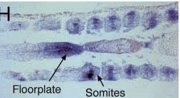 ccn2 (cellular communication network factor 2) gene expression in Xenopus laevis embryo, assayed via in situ hybridization, NF stage 32, horizontal section through trunk region, dorsal left.