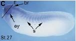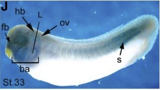tead4 (TEA domain family member 4) gene expression in Xenopus laevis embryo, assayed via in situ hybridization, NF stage 27, lateral view, dorsal up, anteriorleft.