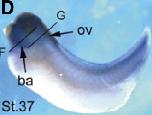 tead1 (TEA domain family member 1 {SV40 transcriptional enhancer factor}) gene expression in Xenopus laevis embryo, assayed via in situ hybridization, NF stage 37, lateral view, dorsal up, anteriorleft.