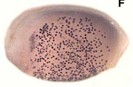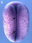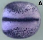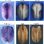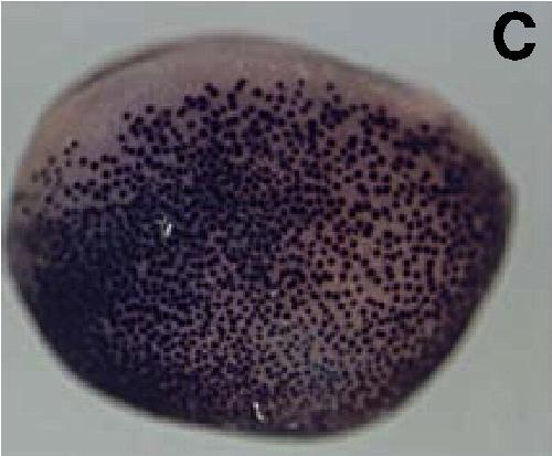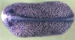 tex15 (testis expressed 15) gene expression in Xenopus laevis, assayed via in situ hybridization, NF stage 17/18, dorsal view, anterior left.