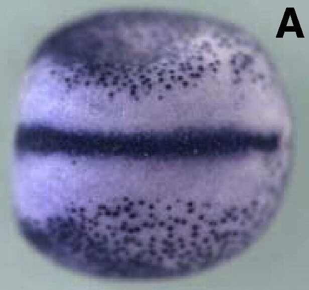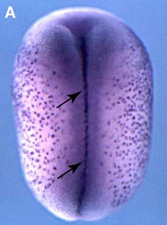 mid1ip1 (MID1 interacting protein 1) gene expression in Xenopus laevis, NF stage 18, assayed by in situ hybridization, dorsal view, anterior up.