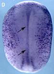 odad4 (outer dynein arm docking complex subunit 4) gene expression in Xenopus laevis, assayed by in situ hybridization, NF stage 18, dorsal view, anterior up.