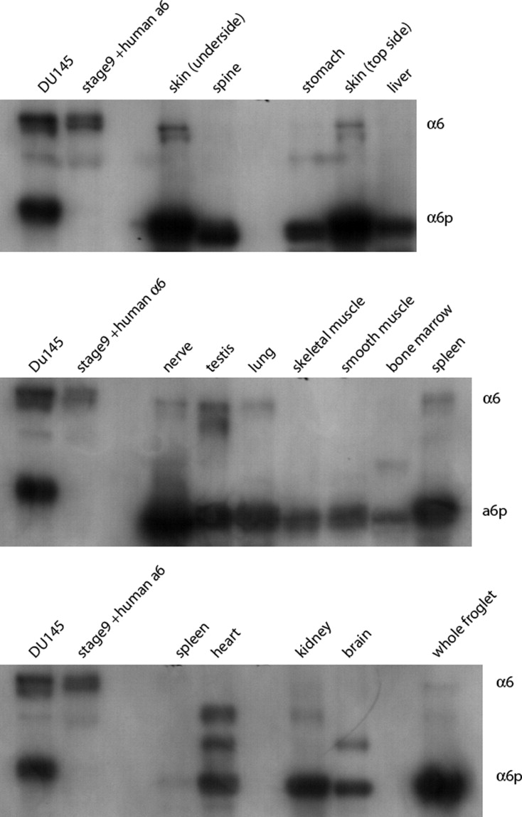 The ratio of a61 a6p vanes between different organs and tissues in the adult. Overall however a6p is far more abundant.