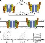 Coupling between voltage sensors and activation gate in voltage-gated K+ channels.