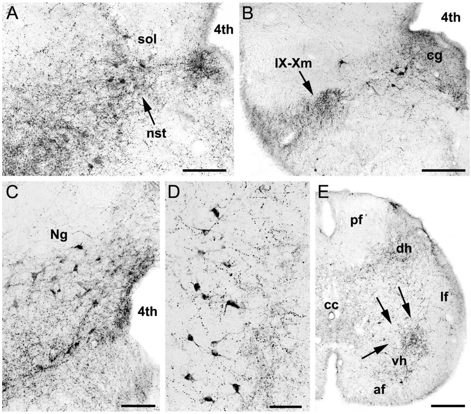 Fig. 5. CARTp-immunoreactivity in the rhombencephalon and the