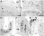 heavily stained neurons in the central thalamic nucleus (C). E: Intense