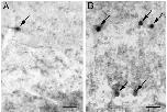 terminal, with some immunogold particles (arrowheads) indicating