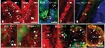 markers. Empty arrowheads show single labeled cells and filled arrowheads show doubly
