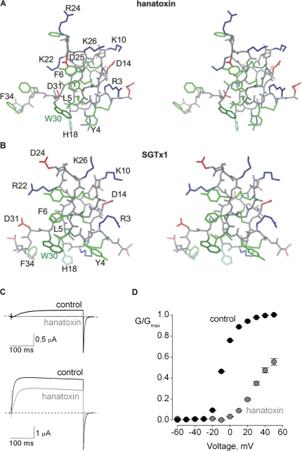 Swartz, Mapping the receptor site for hanatoxin, a gating modifier of voltage-dependent K+ channels. 1997, Pubmed