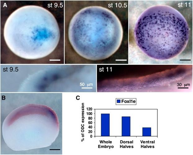 FoxI1e activates ectoderm formation and controls cell position in the Xenopus blastula.