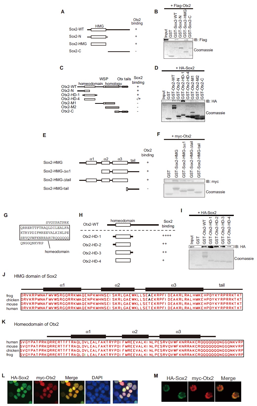 of the homeodomain modulate the interaction between Otx2 and Sox2. (J) Conservation of theHMGdomain of the Sox2 protein. Black boxes indicate the three