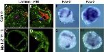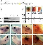 ???displayArticle.abstract??? Dystroglycan (Dg) is a laminin receptor that is expressed at the interface between the basement membrane and the cell membrane. Dg has been reported to play a role in skeletal muscle cell stability, morphogenesis of neuroepithelial tissues, and in regulating cytoskeletal organization, cell polarization, and cell signalling. In this study, we have focused our analysis on the expression of Dg-mRNA and protein at different developmental stages in the pronephros of Xenopus laevis. In order to study its role, we performed loss-of-function experiments mediated by Dg antisense morpholinos and dominant negative mutant. We show that Dg expression is first detectable when epithelialization begins in the pronephric anlage and persists later during tubulogenesis. Loss-of-function experiments induced a disorganization of the basement membrane, a drastic reduction of pronephric tubules and duct that can lead to a renal agenesis. A diminished proliferation of pronephric cell progenitors was also observed in Dg depleted embryos. Together, these data indicate that Dg plays a key role for laminin-1 assembly and pronephric cell anchoring to the basement membrane during early development of the pronephros. They also indicate that Dg may induce a signal transduction pathway controlling cell proliferation needed for the formation of tubules and their growth.
