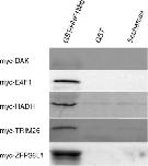 Figure 2. Four candidates interact with HNF1bbb in GST pull-down assays. Full-length interaction partners with an N-terminal myc-tag were produced in a rabbit reticulocyte system (TNT, Promega) and incubated with the recombinant GSTâHNF1bbb fusion protein bound to glutathione sepharose beads. After washing, proteins were recovered and detected by 9E10 mouse anti-myc antibody in Western blots. As controls, GST bound to sepharose or sepharose alone were used.