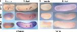 Figure 4. Expression of HNF1β, ZFP36L1, and E4F1 in Xenopus embryos. (a) Whole-mount in situ hybridization of HNF1β, E4F1, and ZFP36L1 in Xenopus neurula and tailbud embryos using antisense probes. HNF1β is predominantly expressed in the pronephros anlage in neurula stage (arrow) as well as in the anlage of the pronephric tubule (arrow) and duct (arrow head) of the tailbud stage. Arrows and arrow heads mark the pronephric tubule and duct anlage, respectively, observed in tailbud embryos probed with E4F1 or ZFP36L1. ZFP36L1 is the Xenopus ortholog C3H-2. (b) Whole-mount in situ hybridizations with the corresponding sense probes.